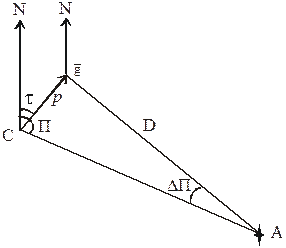 Пеленг на плоскости. На рис. 5.4 показано смещение места р при изменении пеленга на Δ П, градиент