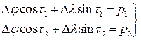DΔφ = р1 sin τ2 − р2 sin τ1 , DΔω = р2 cos τ1 − р1 cos τ2 .