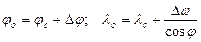 Здесь φ и λ − текущие координаты судна, φс и λс − счислимые координаты на момент обсервации, U о − измеренное значение навигационного параметра, U с − значение навигационного параметра в счислимой точке.