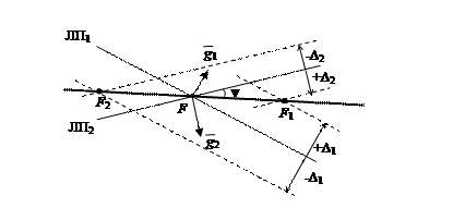 Допустим, место судна определялось по двум однородным навигационным параметрам. Предположим вначале, что навигационные параметры безошибочны, а линии положения ЛП1 и ЛП2, пересекаясь, дают обсервованную точку F, как показано на рис. 6.2.