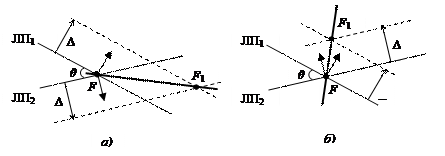 Обе линии сместятся по направлению градиентов на Δ1 и Δ2 и дадут новую точку пересечения F 1.