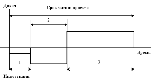 (1 – предынвестиционная фаза; 2 – инвестиционная фаза; 3 – эксплуатационная фаза)