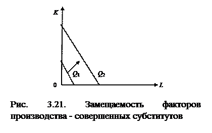 – некоторые числа. Изокванта – прямая линия (рис. 3.21). Предельная производительность труда