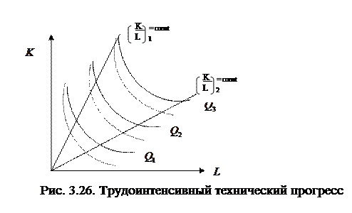Трудоинтенсивный технический прогресс имеет место тогда, когда при неизменном соотношении капитал/труд предельная норма технологического замещения