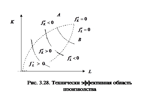 , то вторые производные будут положительны, что характеризует возрастание предельных продуктов. Способ производства с возрастающим предельным продуктом какого-либо фактора производства технически неэффективен.