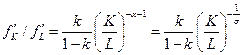 возрастает, т.е. предельный продукт капитала возрастает относительно предельного продукта труда для любого соотношения
