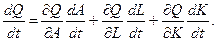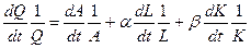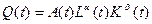 Рассмотрим один из вариантов функции Кобба-Дугласа, когда выпуск, переменные затраты факторов и параметр эффективности технологии изменяются во времени. Функция имеет вид: