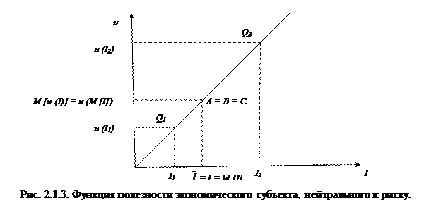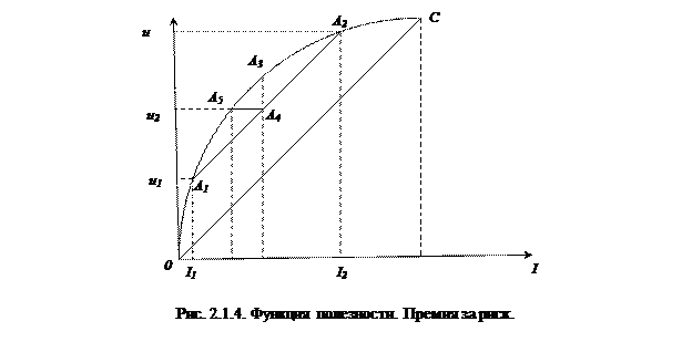 Кривая на рис. 2.1.1 есть график функции полезности индивидуума, не склонного к риску, т.е. рискофоба. В условиях отсутствия риска (точка