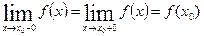 3) односторонние пределы равны и равны значению функции в точке х0: