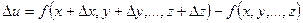 Полным приращениемфункции u=f(х, у,…z) называется