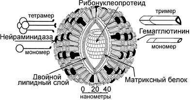 Морфология и химический состав. Вирусы гриппа имеют округлую или овальную форму, диаметр 80 -100 нм.