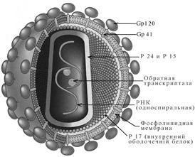 Нуклеокапсид имеет наружную оболочку икосаэдрической формы и внутреннее конусообразное ядро, окружающее рибонуклеопротеид. Геном - диплоидный, состоящий из двух одинаковых спиралей плюс-нитей РНК. В ассоциации с вирусной РНК находится фермент обратная транскриптаза, которая является характерной особенностью ретровирусов. Когда вирус инфицирует клетку, вирусная РНК транскрибируется ферментом сначала в односпиральную ДНК, а затем в двухспиральную ДНК (провирус), которая интегрируется в хромосому клетки - хозяина. Провирус может оставаться в скрытом состоянии в течение длительного времени, хотя это и влияет на функции клетки - хозяина. Время от времени, в ответ на действие факторов, активирующих вирус, провирус индуцирует репликацию вируса путем управления синтезом вирусной РНК и других компонентов вируса.