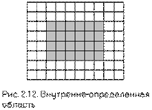 В обсуждавшихся выше алгоритмах заполнение происходит в порядке сканирования. Иной подход используется в алгоритмах заполнения с затравкой. В них предполагается, что известен хотя бы один пиксел из внутренней области многоугольника. Алгоритм пытается найти и закрасить все другие пикселы, принадлежащие внутренней области. Области могут быть либо внутренне-, либо гранично-определенными. Если область относится к внутренне-определенным, то все пикселы, принадлежащие внутренней части, имеют один и тот же цвет или интенсивность, а все пикселы, внешние по отношению к области, имеют другой цвет. Это продемонстрировано на рис. 2.12. Если область относится к гранично-определенным, то все пикселы на границе области имеют выделенное значение или цвет, как это показано на рис. 2.13. Ни один из пикселов из внутренней части такой области не может иметь это выделенное значение. Тем не менее пикселы, внешние по отношению к границе, также могут иметь граничное значение. Алгоритмы, заполняющие внутренне-определенные области, называются внутренне-заполняющими, а алгоритмы для гранично-определенных областей - гранично-заполняющими. Далее будут обсуждаться гранично-заполняющие алгоритмы, однако соответствующие внутренне-заполняющие алгоритмы можно получить аналогичным образом.