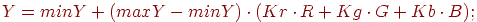 В телевидении обычно берут minY = 16, maxY = 235, minC = 16, maxC = 240. В стандарте сжатия изображений используется полный 8-битный диапазон: minY = 0, maxY = 255, minC = 0, maxC = 255.