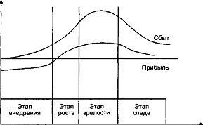 Жизненный цикл продукции — одна из наиболее распространенных моделей, применяемых для анализа последовательных стадий в развитии деловой активности производства какого-либо вида товара или услуги. Обычно он представляется в виде кривой продаж, рассматриваемой на временном отрезке, охватывающем период от запуска изделия в производство до его "ухода" с рынка. Жизненный цикл продукции подразделяется на четыре этапа (рис. 6.2).