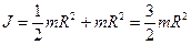 Последнее соотношение – частный случай теоремы Штейнера: момент инерции твердого тела относительно произвольной оси равен моменту инерции относительно оси, проходящей через центр масс тела параллельно заданной оси, плюс произведение массы тела на квадрат расстояния между осями. Эта теорема позволяет переходить от моментов инерции простых систем к более сложным. Например, момент инерции сплошного диска относительно оси, походящей через его край перпендикулярно плоскости диска равен