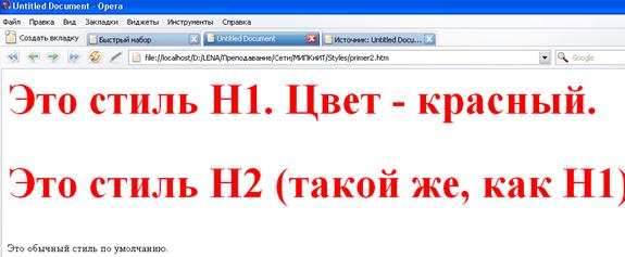 Внешний вид в браузере (стили Н1 и Н2 увеличились в размере и изменили цвета):