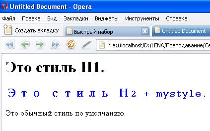 <h2 class="mystyle">Это стиль Н2 + mystyle.</h2>