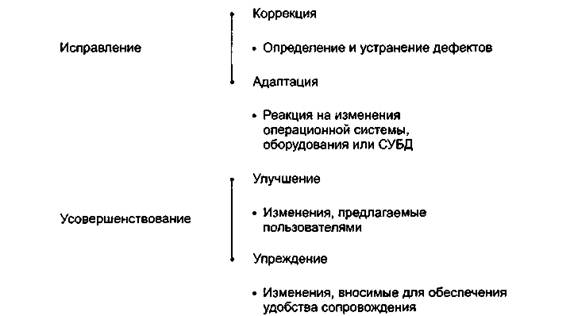 Следует различать работы по сопровождению, направленные на устранение дефектов (fixing) и на усовершенствование (enhancing) приложения. Различные исследования показали, что 60-80 % работ обычно относится к усовершенствованию приложения, а не к исправлению его недостатков.