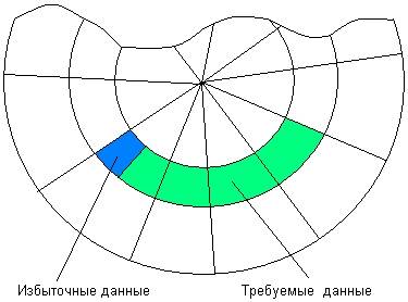 Сектор — наименьшая адресуемая единица обмена данными дискового устройства с оперативной памятью. Для того чтобы контроллер мог найти на диске нужный сектор, необходимо задать ему все составляющие адреса сектора: номер цилиндра, номер поверхности и номер сектора. Так как прикладной программе в общем случае нужен не сектор, а некоторое количество байт, не обязательно кратное размеру сектора, то типичный запрос включает чтение нескольких секторов, содержащих требуемую информацию, и одного или двух секторов, содержащих наряду с требуемыми избыточные данные (рис. 8.4.4).