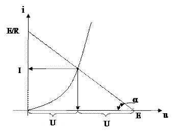 Точка пересечения ВАХ НЭ и линии генератора называется рабочей точкой и определяет ток цепи