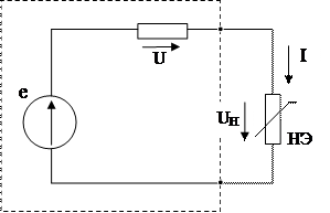 Пусть нелинейная цепь, содержащая линейные и нелинейные элементы (НЭ) может быть сведена к цепи, приведенной на рис.4.3,а. рассмотрим графический способ определения тока в цепи и напряжения на ее элементах.