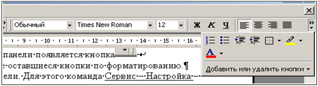 Можно добавлять свои кнопки на панели. Для этого можно воспользоваться кнопкой «Добавить или удалить кнопки».