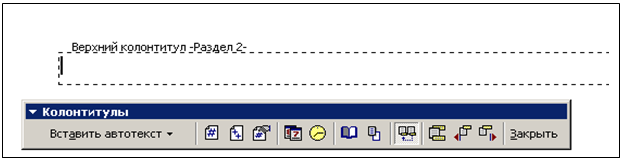 При создании колонтитулов между ними поддерживается автоматическая связь, т.е. изменяя колонтитул в одном разделе, мы меняем его во всех остальных.