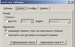 означает следующее. Если в конце страницы содержимое ячейки не помещается на страницу, то ячейка будет разбита и остаток будет перенесен на следующую страницу. Если флажок снять, то таблица будет переноситься на следующую страницу по границе строк.