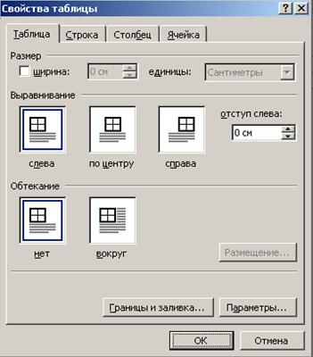 3 способ. Команда Таблица – Свойства таблицы. В ней имеется 4 вкладки: