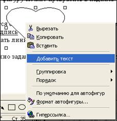 Любую замкнутую фигуру можно превратить в надпись. Для этого в контекстном меню команда Добавить текст.