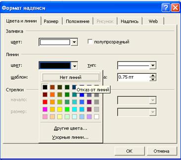 Рис. 58 - Окно для изменения заливки и линий надписи