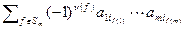 . Поменяем порядок суммирования, поставив сумму по подстановкам на последнее место. Вынесем за знак суммы сомножители не зависящие от f получим