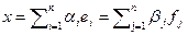 . Подставим вместо векторов базиса e, их выражения через векторы базиса f, получим равенство