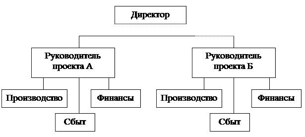 а) проектная (временная структура, создаваемая для решения конкретных и ограниченных во времени задач). Пример: при создании космического корабля применяется сводное проектирование оргструктуры, когда временная группа специалистов образует уменьшенную копию функциональной структуры.