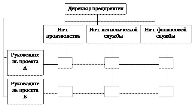 б) матричная - организационная структура, являющаяся комбинацией функциональной и продуктовой схем, предлагающая высокую степень специализации отдельных служб при условии двойного подчинения. Она предполагает разделение управления на два вида: группа подчиняется одновременно линейному руководителю и руководителя функциональному.