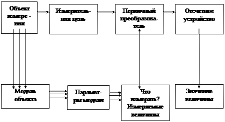 Структурная модель процедуры измерения включает: объект измерения, средство измерения, первичный измеритель информации. Это реальные объекты.