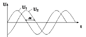 Поскольку ∆t – временной интервал, то для измерения сдвига по фазе между двумя напряжениями можно использовать электронный осциллограф, а лучше электронный частотомер, у которого имеется два входа для U1, U2.