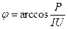 Косвенный метод. Измеряем ток I, напряжение U и мощность P. По результату 3-х измерений вычисляем угол сдвига фаз как: