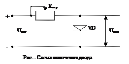 Rогр — резистор, регулирующий величину тока через диод, рабочую точку. Его наличие обязательно. Кроме того, часто резистор подстроечный. Интервал температуры с таким измерителем порядка – 10 о С… + 4о С. Обычно используются кремниевые диоды (КД502, 520, 522). Поскольку уровень сигнала на диоде мал его увеличивают с помощью усилителя с большим RLX (операционный усилитель). Если температурный диапазон необходим более широкий, применяют полупроводниковые транзисторы, часто включенные последовательно. Схема включения примерно такая же и уровень тока через транзистор измеряется с помощью цифрового вольтметра. В частности такие преобразователи используются в комбинированных приборах типа В7-27. Диапазон температуры шире - 40 о… + 70 о С. Но за счет имеющейся нелинейности характеристики, погрешность не меньше 2-5 %. Полупроводниковые преобразователи просты, надежны, но не обеспечивают высокой точности.