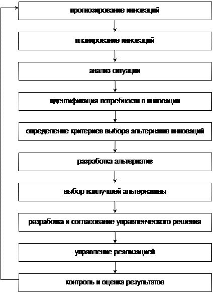 Процесс управления инновациями на микроуровне включает приведение в соответствие целей управления инновациями для функционирования организации в целом, выявление ее конкурентных преимуществ и недостатков, определение методов управления инновациями, механизма управления инновациями.