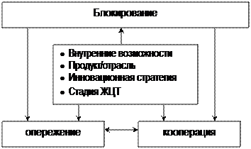 В зависимости от возможностей фирмы, ее инновационной стратегии компания может придерживаться следующих конкурентных стратегий: блокирования, опережения и кооперации.