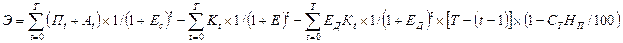 Основной показатель целесообразности реализации ИП – дисконтированный экономический эффект (Э) может быть рассчитан: