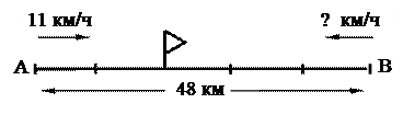 План решения той и другой задачи ученики могут составить сами. Решение лучше записать отдельными действиями. Затруднение обычно вызывает один из способов решения последней задачи (48:2=24, 24-13=11). В этом случае, обращаясь к иллюстрации, надо показать, что в каждый час велосипедисты сближались на одинаковое расстояние, поэтому легко узнать, на сколько километров они сближались в час, выполнив деление (48:2=24), зная это и скорость одного из них, можно найти скорость другого (24-13=11).