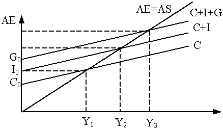 Мультипликатор показывает, во сколько раз суммарный рост (сокращение) совокупного дохода превосходит первоначальный прирост (сокращение) автономных расходов. Это означает, что относительно небольшие изменения в величинах C, I, G или Xn могут вызвать значительные изменения в уровнях занятости и выпуска (рис.4).