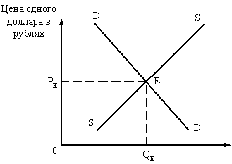 3. Плавающий курс. Обменный курс устанавливается в результате свободных колебаний спроса и предложения как равновесная цена валюты на валютном рынке. При системе абсолютно гибких валютных курсов колебания обменного курса ничем не ограничены, поэтому колебания объемов экспорта и импорта, а, следовательно, и состояния торгового баланса, текущего счета и платежного баланса в целом могут оказаться труднопрогнозируемыми, что может оказать дестабилизирующее воздействие на экономику.