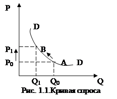 Графическое выражение зависимости между ценой товара и величиной спроса представляет собой кривую спроса D (рис. 1.1.): по горизонтали показана величина спроса Q на велосипеды, а по вертикали пена на чих Р.
