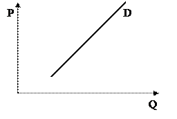 4.Эффект Веблена, или «демонстративное потребление», гипотетически способен создать положительную зависимость между ценой и количеством спроса (рис.2.4.). Сомнительно, что данный эффект имеет широкое распространение. Суть его в следующем.