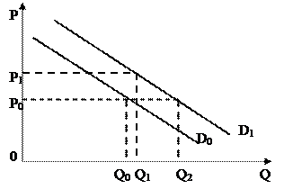 Данный случай изображен на рис. 2.2. Здесь D0 - линия первоначального спроса на продукт. Увеличение цены до P1 внушило покупателю мысль, что «новый» товар обладает особым качеством. Это приводит к сдвигу линии спроса в положение D1 и увеличению объема потребления с Q0 до Q1. Однако данное увеличение потребления вовсе не явилось следствием действия закона спроса. Если реклама или личный опыт убедит покупателя, что новый товар обладает особым качеством, то снижение цены до первоначального уровня P0 увеличит потребление до Q2. Если же покупатели разочаруются в товаре, то линия спроса может вновь вернуться в положение D0