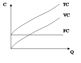 Постоянные издержки (FС) — это издержки, величина которых не изменяется с изменением объема производства. К постоянным относятся издержки, связанные с использованием зданий и сооружений, машин и производственного оборудования, с арендой, капитальным ремонтом, а также административные расходы. Постоянные издержки на рис. 14, изображены в виде прямой линии FС параллельной оси абсцисс.